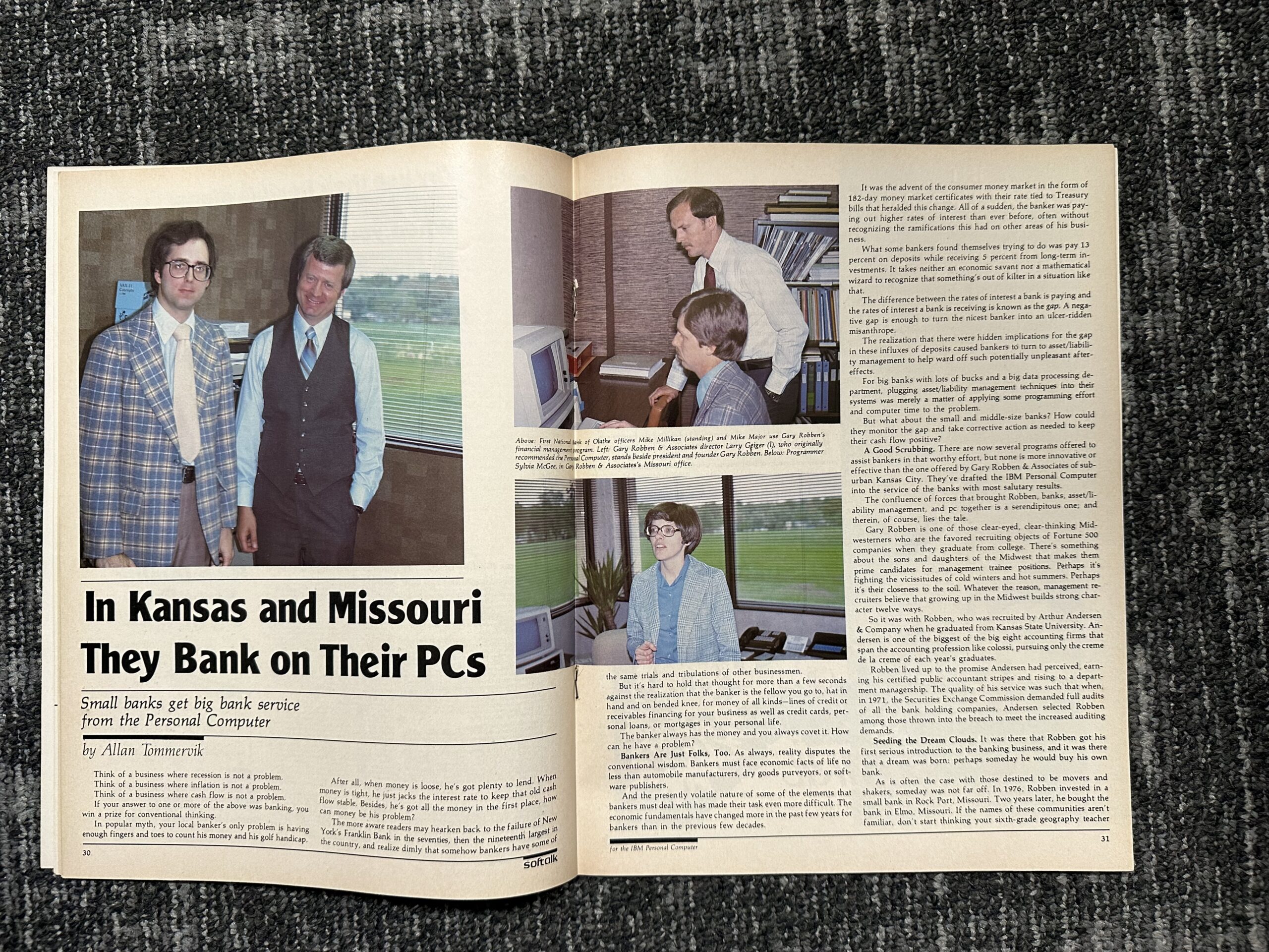 Cover story: Banks and PCs (Al Tommervik). The Bug that Ate Boca Raton (PC BASIC rounding error) and coverage of DOS v1.05 solving various problems.